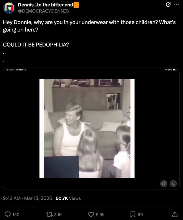 Sebagai contoh, pada 13 Maret, seorang pengguna X membagikan (diarsipkan) gambar tersebut dengan keterangan, “Hey Donnie, mengapa kamu dalam pakaian dalam bersama anak-anak itu? Ada apa di sini? BISA JADI PEDOFILIA?” Pengguna lain mengklaim gambar itu muncul dalam berkas kasus federal yang berkaitan dengan mantan pelaku kejahatan seksual Jeffrey Epstein.